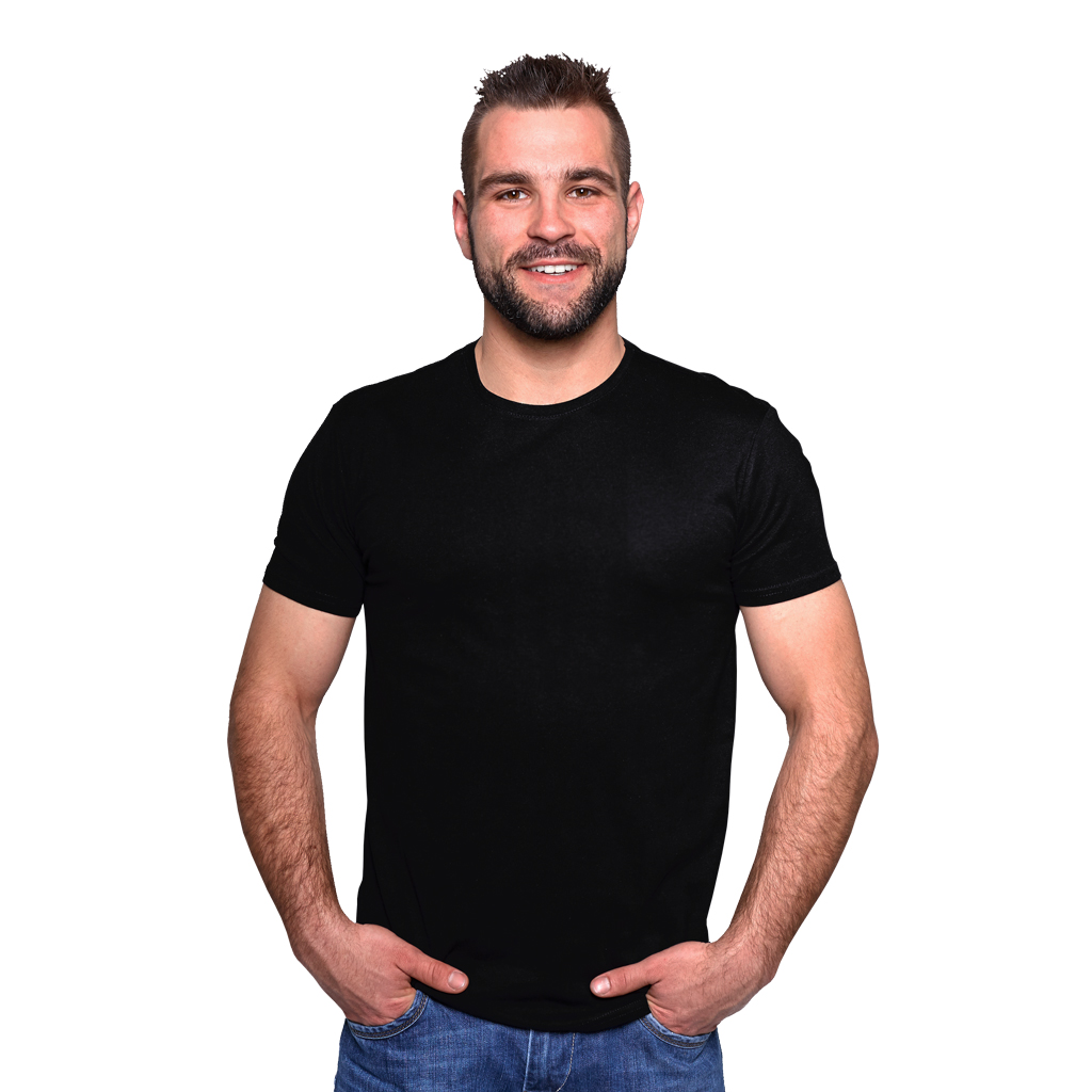 Klasické bavlněné tričko střední gramáže. Tričko má tubulární střih bez postranních švů, krátké rukávy a kulatý průkrčník ze žebrovaného úpletu. Je vyrobeno z kvalitní 100% bavlny.