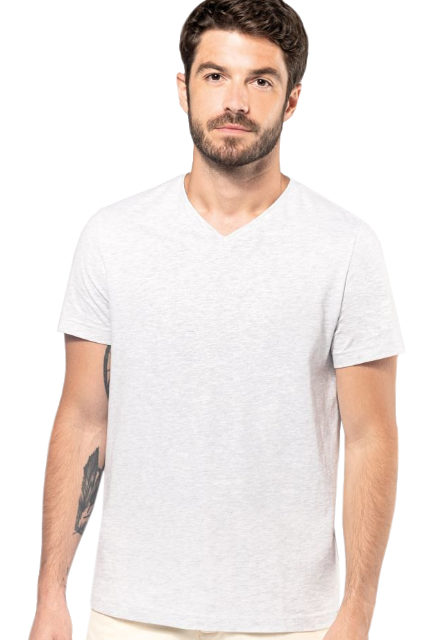 Premiové pánské tričko s výstřihem do V s hladkým lemováním a s dvojitými švy. Krční lemovka má kontrastní barvu - šedá u barevných triček a bílá u bílých triček. Materiál: 100% česaná bavlna, enzymaticky prané, single jersey, oxford grey: 90% bavlna, 10% viskóza.